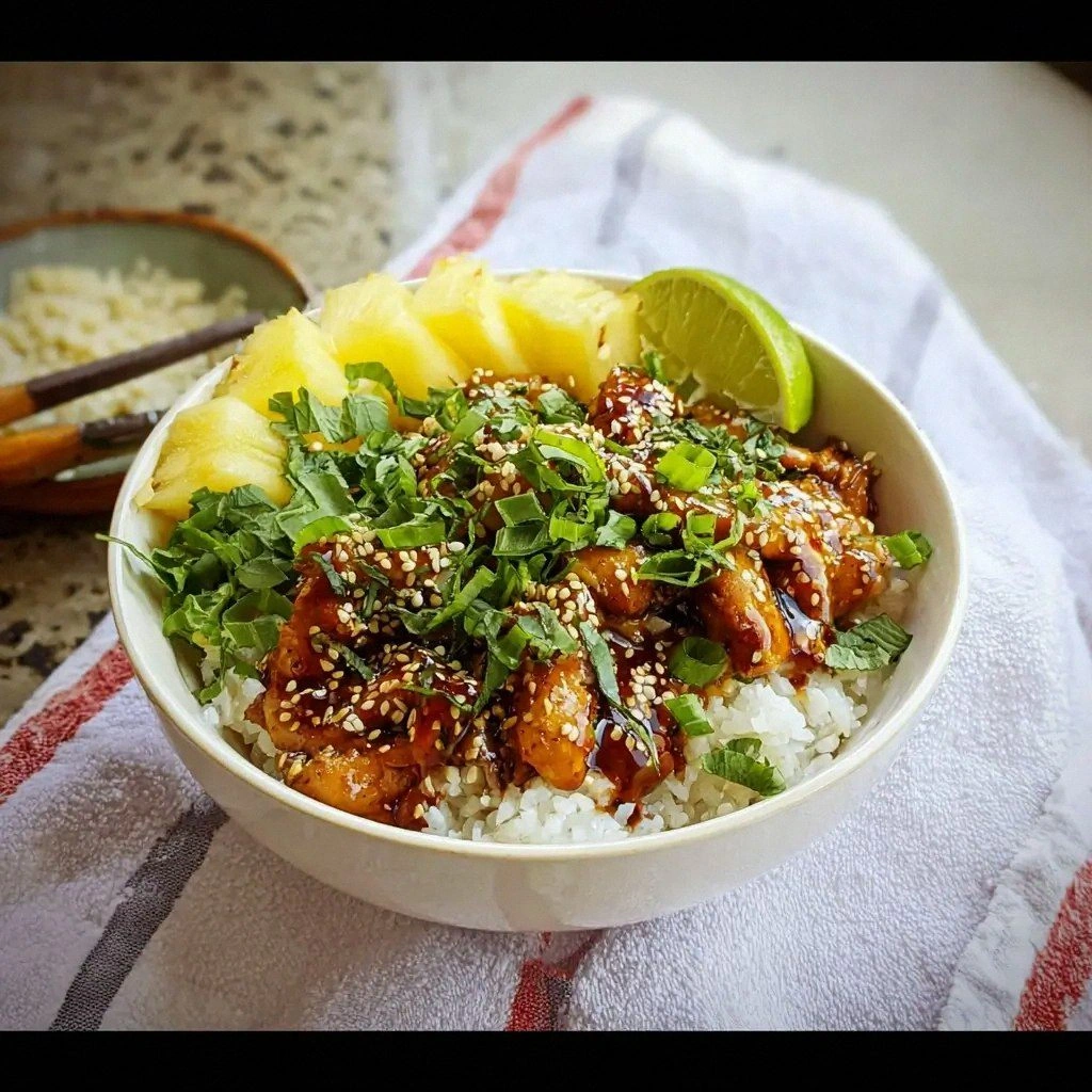Swap jasmine rice for cooked soba or rice noodles for a different texture. Toss the noodles with the glaze and pineapple, then top with sliced chicken. Add a sprinkle of chopped cilantro and a squeeze of lime for a fresh finish. This variation offers a noodle‑centric twist that’s equally delicious.