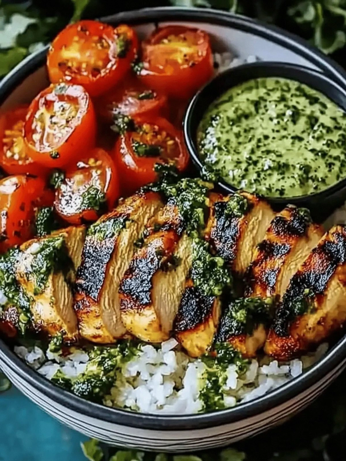 - Assemble the Bowl: Lay a bed of fresh greens in each serving bowl. Slice the rested chicken into strips and arrange them on top. Scatter diced tomatoes and drizzle the creamy garlic sauce over the chicken. Finish with a generous spoonful of chimichurri to tie the flavors together.