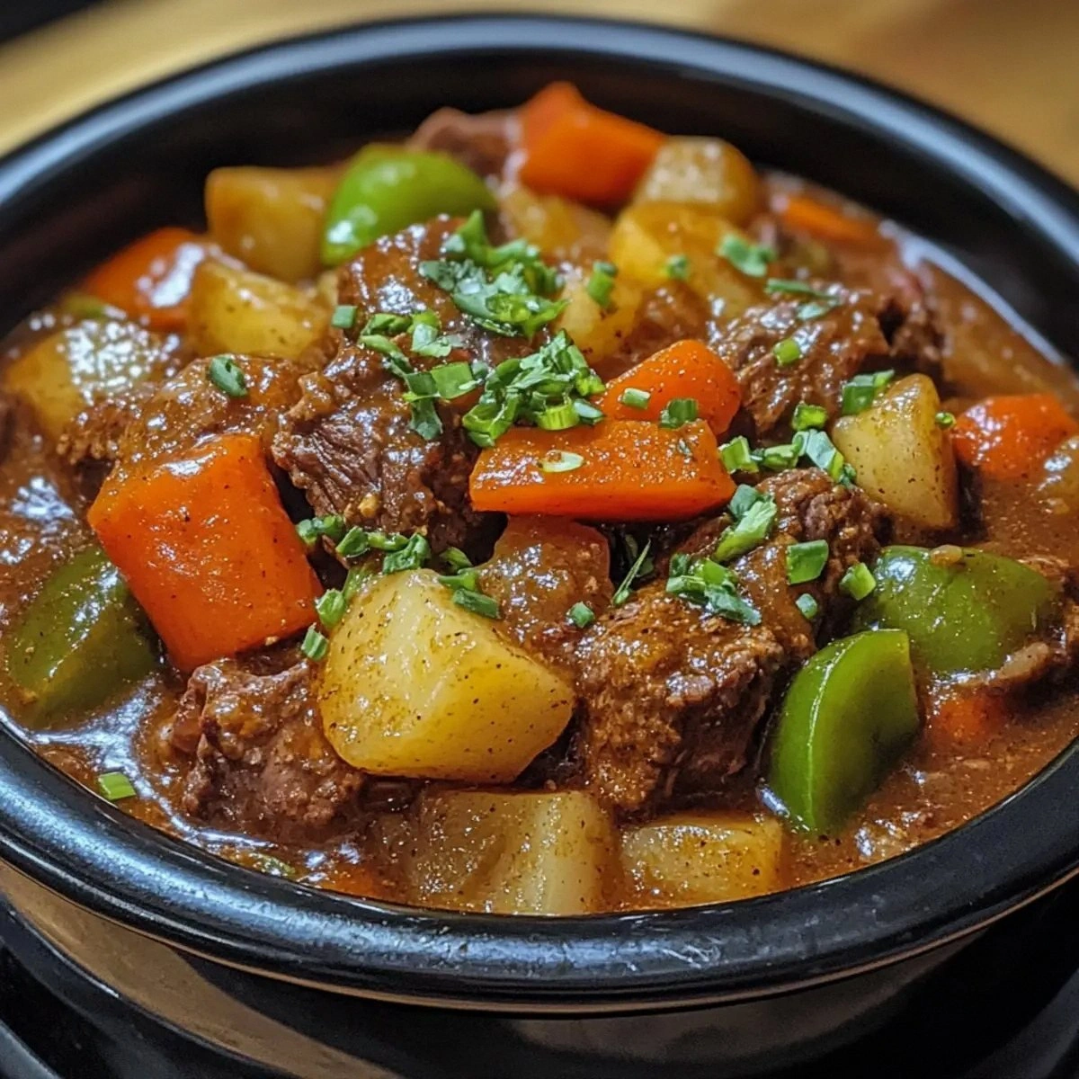 - Cover and set the slow cooker to low. Cook for 6–8 hours, or until the beef is fork‑tender and the vegetables are perfectly soft. The slow, gentle heat allows the beef’s collagen to break down into gelatin, giving the sauce a silky body. If you’re short on time, the stew will still be delicious after 4 hours, but the flavor will be less developed.