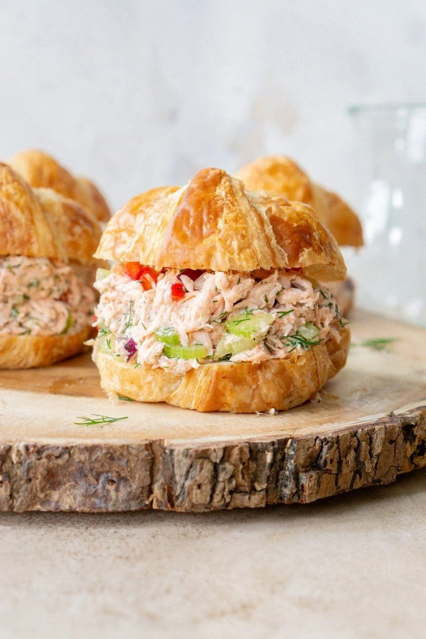 Replace the croissant with a sturdy lettuce leaf or a thinly sliced cucumber for a refreshing, low‑carb alternative. The crunch of the lettuce or cucumber keeps the sandwich light, while the salmon salad provides the necessary protein punch. This version is perfect for a quick, healthy lunch.