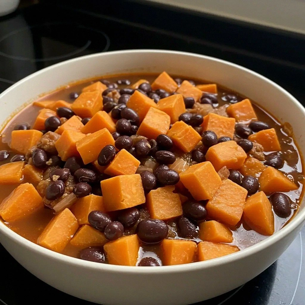 Picture this: a steaming pot on the stove, the sweet potatoes roasting to a golden caramel, the aroma of cumin and smoked paprika mingling with the earthy scent of black beans. You can hear the sizzle as the onions hit the hot oil, the subtle crackle that promises flavor. The visual feast of orange, green, and red hues in the bowl is almost too beautiful to touch. The taste will hit your tongue with a sweet, mildly sweet bite, followed by a savory depth that only beans can provide. The texture is a delightful contrast: tender sweet potato chunks against the creamy, velvety beans. It’s a dish that feels like a hug in a bowl.